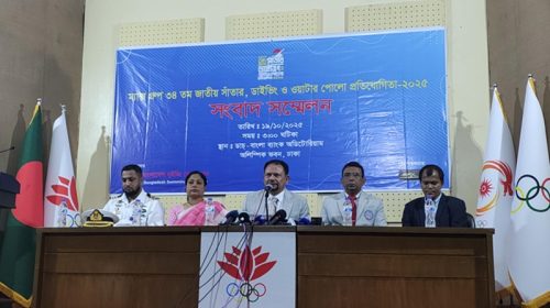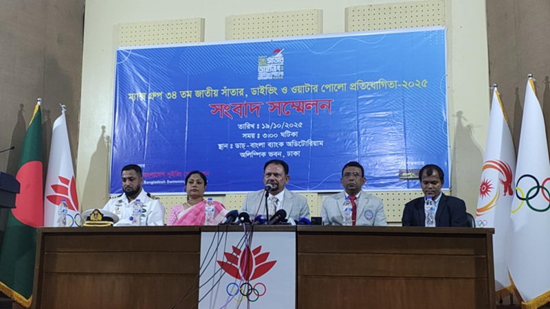 ৩৪তম জাতীয় সাঁতার, ডাইভিং ও ওয়াটার পোলো প্রতিযোগিতা উপলক্ষ্যে রোববার (১৯ অক্টোবর) দুপুরে আনুষ্ঠানিক সংবাদ সম্মেলন অনুষ্ঠিত হয়েছে।