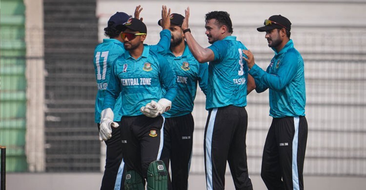 জবাবে ব্যাটিংয়ে নেমে নিয়মিত বিরতিতে উইকেট হারিয়ে চাপে পড়েছিল সেন্ট্রাল জোন। ওপেনার মাহফিজুল রবিন ২৯, অধিনায়ক অঙ্কন ১২ এবং আরিফুল ২১ রান করে আউট হলে জয়ের পথ কঠিন হয়ে পড়ে। তবে এক প্রান্ত আগলে রেখে লড়াই চালিয়ে যান ওপেনার মোহাম্মদ নাঈম শেখ। সেন্ট্রাল জোনের ইনিংসের ৩৩তম ওভারে আবারও আম্পায়ারিং নিয়ে উত্তেজনা ছড়ায়। মুশফিক হাসানের বলে আরিফুলের বিপক্ষে কট বিহাইন্ডের জোরালো আবেদন নাকচ হলে ক্ষোভে ফেটে পড়েন ইয়াসির রাব্বি ও নাসুম আহমেদরা।