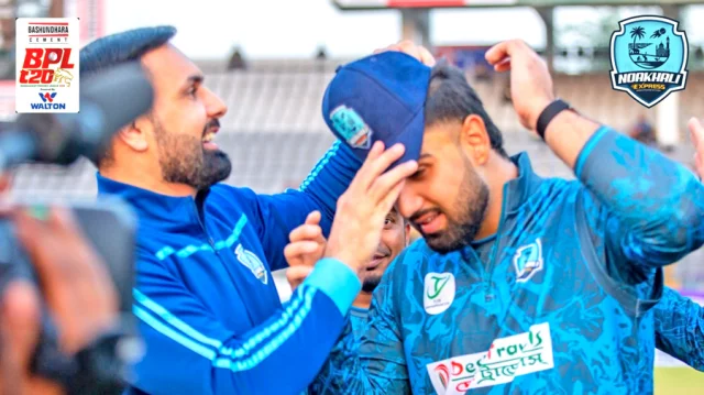 বিপিএলের মঞ্চে রবিবার এক ইতিহাস রচিত হলো। ম্যাচের আগে বাবা মোহাম্মদ নবিই নোয়াখালী এক্সপ্রেসের ক্যাপ পড়িয়ে দিলেন ছেলে হাসান ইসাখিলকে। পরে ছেলের সঙ্গে কিছুক্ষণ ব্যাটও করলেন সিলেট আন্তর্জাতিক স্টেডিয়ামে। শুধু ম্যাচে অংশগ্রহণ নয়, বিপিএল অভিষেকে ব্যাটিংয়ে ইসাখিলের অসাধারণ পারফরম্যান্স পুরো খেলার আবহকে আরও রঙিন করে তুললো।ক্রিকেটের অঙ্গনে এমন আয়োজন নিয়মিত দেখা যায়, তবে বাবা–ছেলের এই মুহূর্তটি বিপিএলের জন্য বিশেষ। বহুদিন ধরে দলের সঙ্গে অনুশীলন করলেও প্রথমবার একসঙ্গে ম্যাচ খেলার সুযোগ পেলেন তাঁরা। ১৯ বছর বয়সী ইসাখিল বিপিএল অভিষেকে মাত্র ৬০ বলে ৯২ রান করেন। চতুর্থ উইকেটে বাবা–ছেলের জুটি গড়ে তারা দলের রান বাড়াতে সাহায্য করেন। জুটির ৫৩ রানের মধ্যে ইসাখিলের ব্যাট থেকে আসে ৩৪ রান, নাবির ব্যাট থেকে আসে ১৭। ম্যাচের শেষ পর্যায়ে নাবি ১৮তম ওভারে আউট হন এবং এরপর ইসাখিলও শেষ পর্যন্ত কোনো রান করতে পারেননি। তার ইনিংসে ছিল ৭টি চার এবং ৬টি ছক্কা।